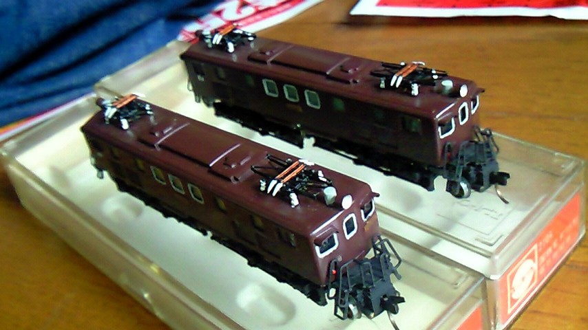 昔は確か5両くらい在籍していたのですが、現在の2両を除いてすべて、同じエンドウ製のEF58(記憶では特急色、青大将色、茶色、、一般色が各3両ずつ、なぜか金色1両・・・現状当鉄道に残っているものは、金色1両、ジャンク状態の茶色1両のみ)や、EF57(エンドウ製が5両、KATO製がやはり5両在籍・・・全車転属)とともに、やはり友人や買取ショップへ転属した憶えがあります。