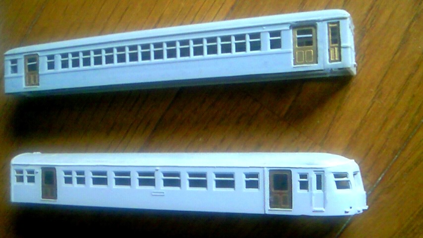 個性的な旧型国電の中でも、さらに1癖、2癖ある車両が好きなオヤジにとって、005など作りたい車両があります。こちらは後で記載する予定のクモハ54-007とクハ68の2両と作業工程を合わせているため、無塗装状態です。