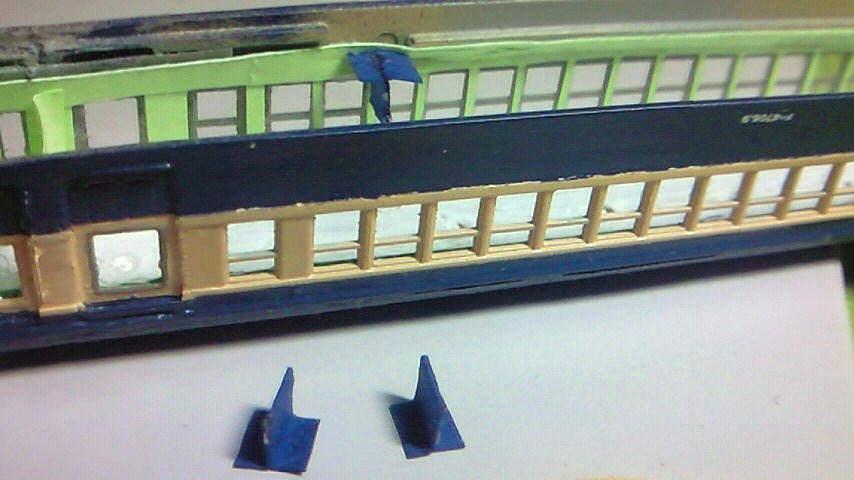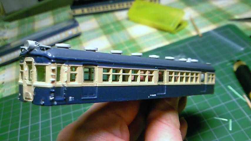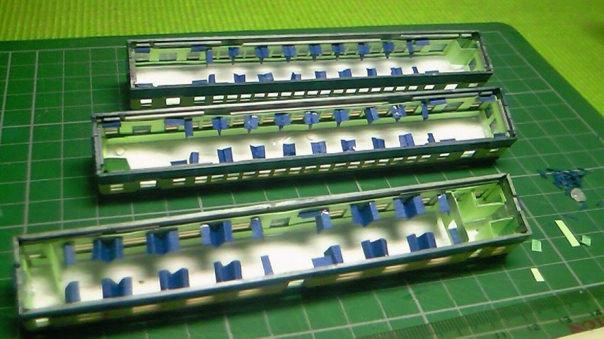 現在、製作中の旧型国電の内装仕上げを1両ずつ行っています。