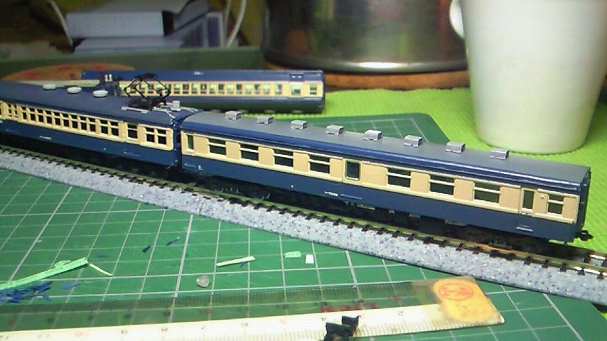 お試しにクハ47に、取り付けを開始して、それらしく貼り付けてみたところです。